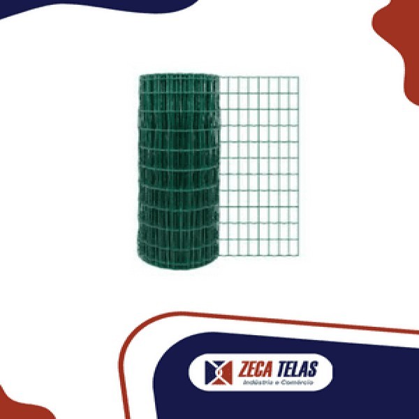Tela soldada malha 50mm x 100mm nas alturas 1,00; 1,20; 1,50 e 1,80. Galvanizada ou revestida em aço zincado.